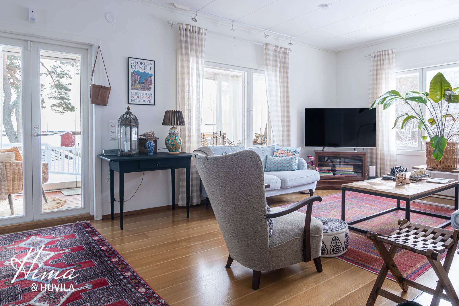 Moni hankolainen muistaa Hangon Troolisataman lapsuudestaan – sieltä isät hakivat perheelleen tuoreita silakoita, kun troolarit saapuivat satamaan. Näissä tunnelmissa, punaisten kalavajojen täplittämän rannan vieressä, sijaitsee tämä komea peruskorjattu talo. Voit ihailla merta ja tutkailla satamaan saapuvia ja sieltä lähteviä aluksia omalta sohvaltasi tai kipittää parisataa metriä ja olet yhdellä Hangon salaisimmista hiekkarannoista. Tänne ei turistit eksy!